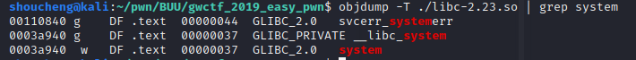 23、当题目已给出libc时,可以直接用libc显示出函数在其内的偏移地址,命令格式如下:(也可以直接调用libc文件,libc = ELF(“./文件名”))