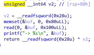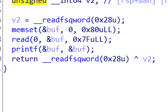 这个操作即为向栈中插入 Canary 值,代码如下: