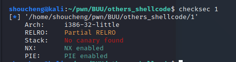 十三、others_shellcode 例行checksec以及执行附件,开启了nx,pie以及部分relro。运行附件发现直接就获取了shell。。