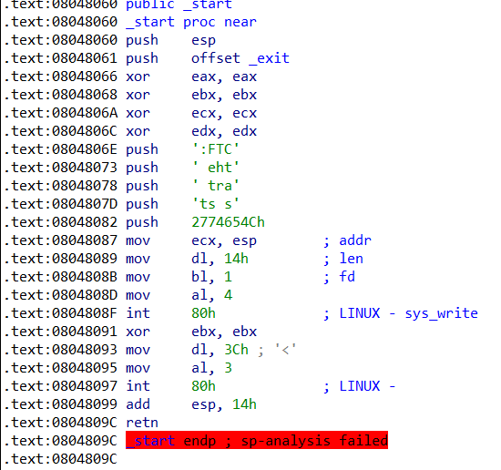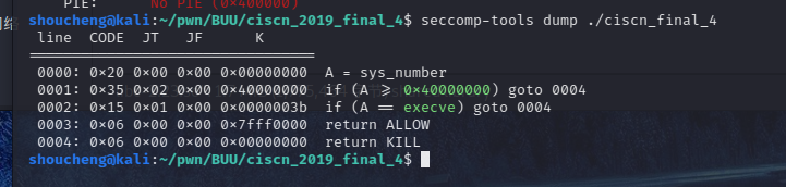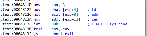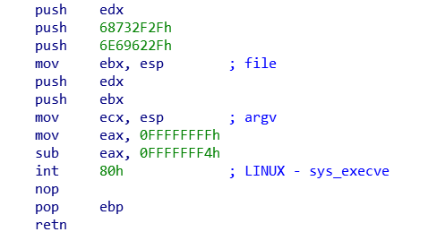很显然,这里面给出了两个调用号,0F和3BH,对应着这题两种解法,我们先介绍使用3BH调用号调用execve函数的解法,稍后再介绍另一种。