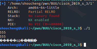 十五、ciscn_2019_s_3 常规执行checksec一下,查看保护,并且执行一下程序,看看回显