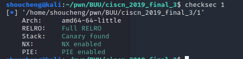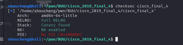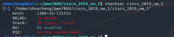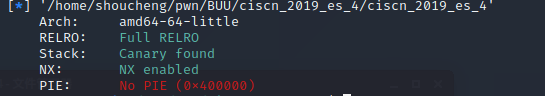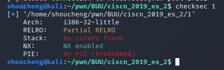 十六、ciscn_2019_es_2 常规checksec查看保护措施