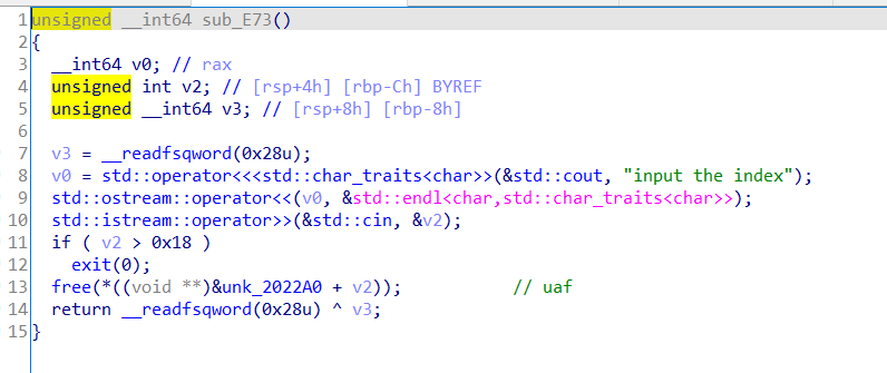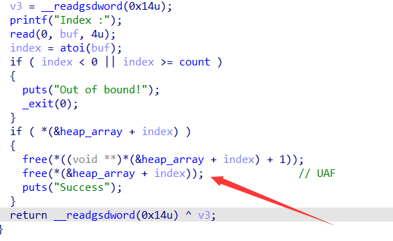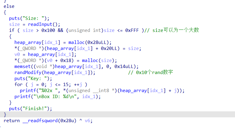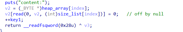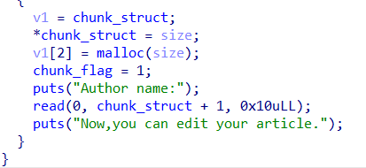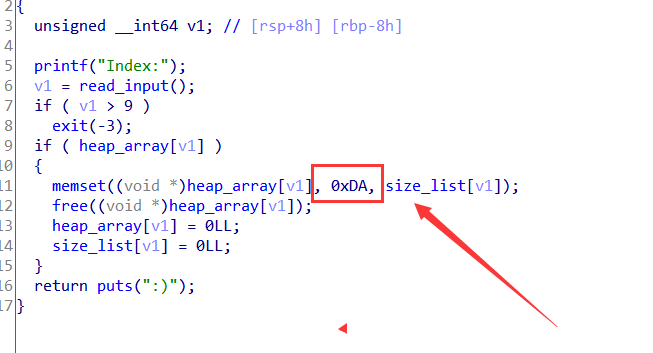 这题特殊在释放函数会先对堆块的内容填入你写入 size 的大小的垃圾数据,这个是你写入的size,这个很重要