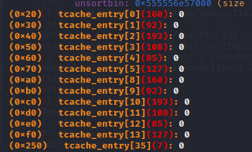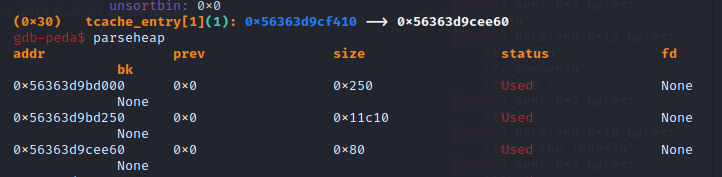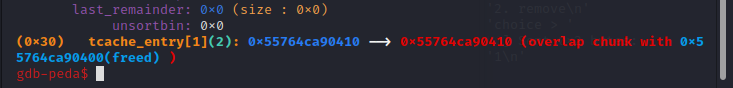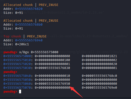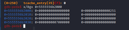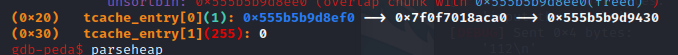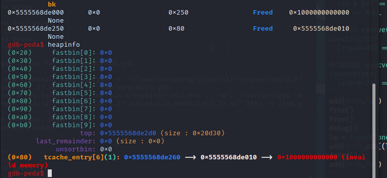 可以看到,0x20大小的tcache_entry出现了类似前面的重复释放的样式,所以也是申请堆块,然后在libc地址生成chunk,再将其泄露。之后就是劫持hook了,以上的就是这题的点了,后面不多说了。
