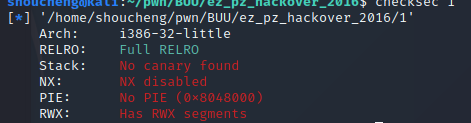 二十二、ez_pz_hackover_2016 常规checksec一下,查看保护机制