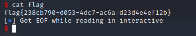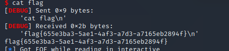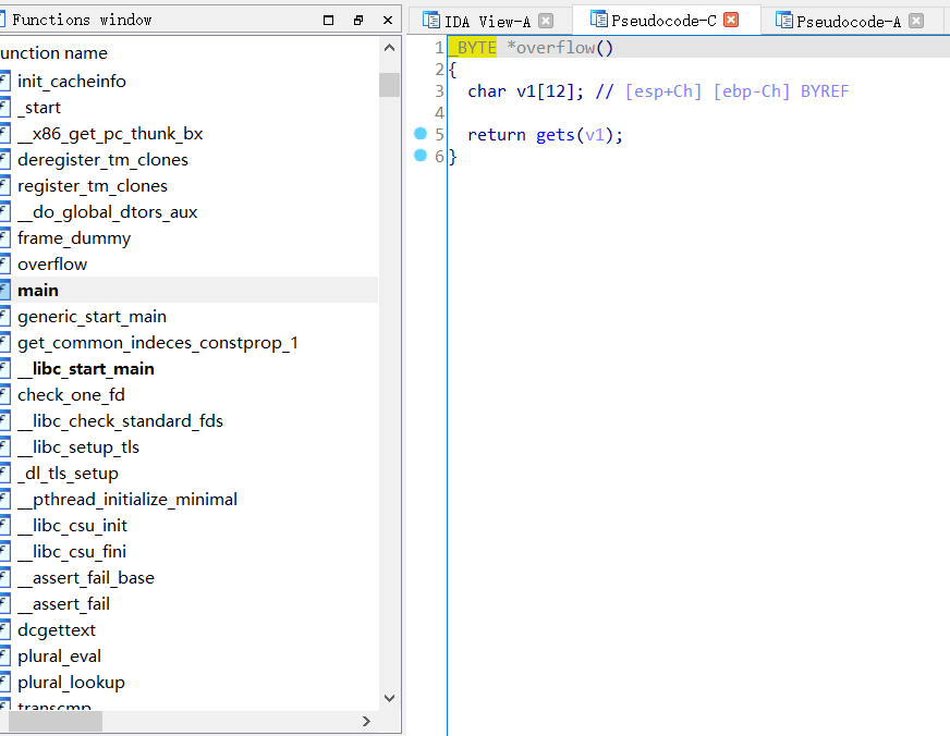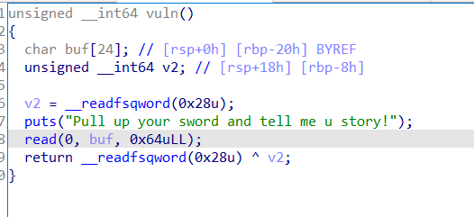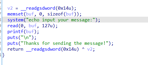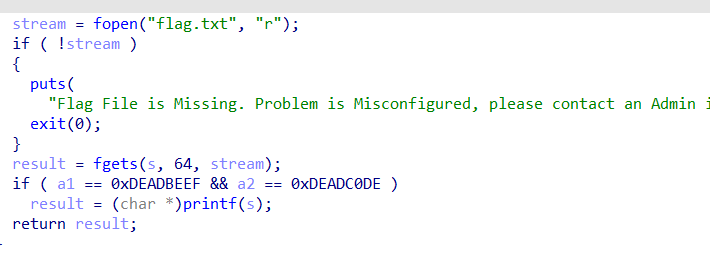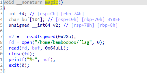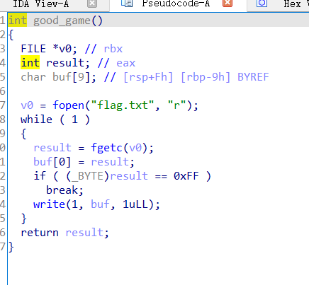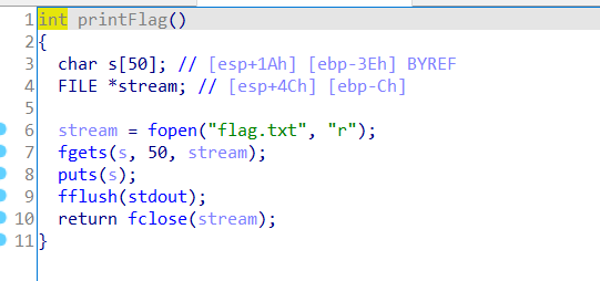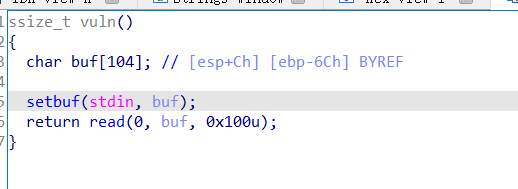 有个这个函数,可以看见,已经读取了flag,并且还会将其输出,并且main函数有溢出点,跳转到这,再接收flag即可