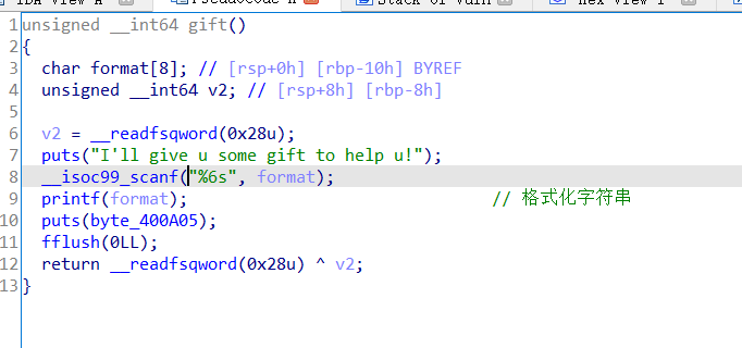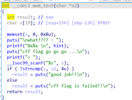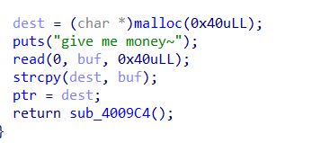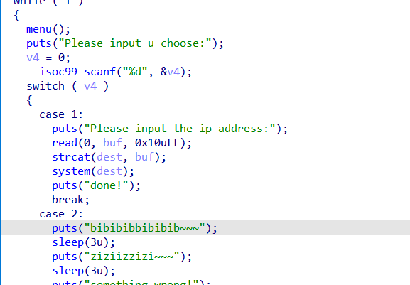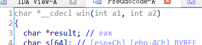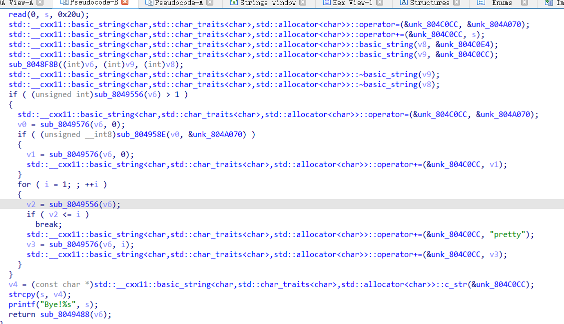 直接输入是不够溢出的,然后往下看,发现还有个strcpy,可能可以溢出,但是v4不知道咋来的,然后就跑去百度了(真没志气,hh),发现其实能看懂应该很简单,不过可能就是为了让人看不懂吧,嗯,应该要学c++了!(下次一定)