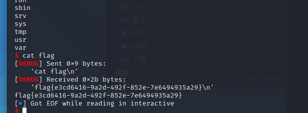获取到了/bin/sh的地址,后面就是构造rop链了。