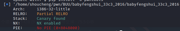 开启了nx和canary,relro只开启部分,可以修改got表(后面没用到就是了)