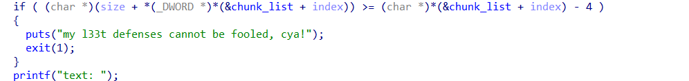 程序比较简单,可以很明确的发现,不存在后门函数,也没有明显的溢出点,被限制了。printf也没有问题,对于这样的情况,我第一时间是想到了整数溢出,通过整数溢出来越过检查,通过小数变成大数,从而溢出。