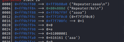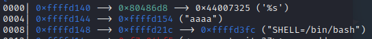我们泄露的地址距离字符串起始地址0xffc445f0相减之后,相差0x1c