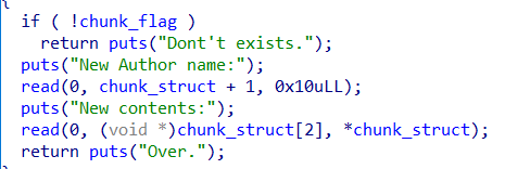 漏洞点在于输入函数,存在offbynull,因此构造overlap