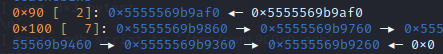 出现了循环指向,这时候我们在申请同样大小的堆块,这里是要申请三次,第三次chunk生成的地方(选择生成在chunk0的size处,修改他的值),才是我们要的。首先是指向自身,当我们第一次申请时,通过输入把fd修改为指向chunk0