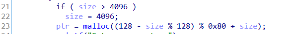 要泄露libc,就要有被释放的unsorted bin,这里限制了chunk的大小,那我们就要去修改chunk size,将其修改为比0x410大的数,因为题目环境为libc-2.27.so,存在tcache。