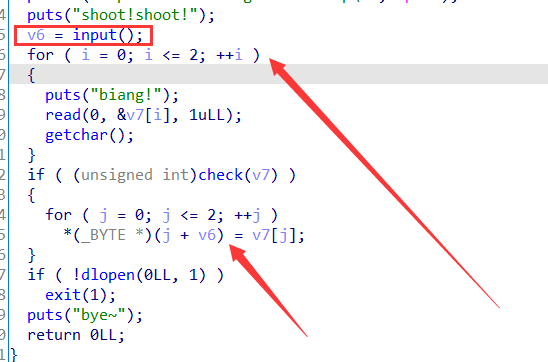 另外值得注意的点(我踩坑了):这边的v6是用atol转换出来的,所以输入时直接用str转为字符串输入,如果使用p64打包,会变成16进制数,atol会识别不了,直接返回0