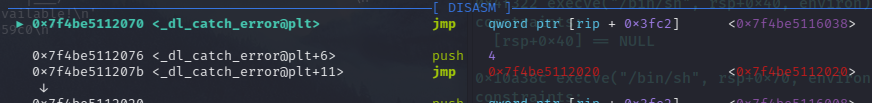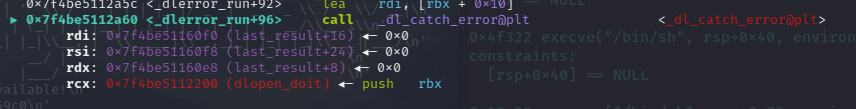 另一个可以修改为one_gadget的地方就在不断追踪dlopen这个函数时,可以发现,在_dlerror_run+96的地址调用_dl_catch_error@plt