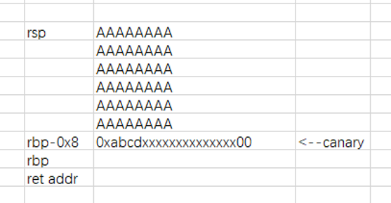 那么,我们可以简单把它理解成一个类似于cookie之类的东西,程序执行时需要验证它是正确的才能正常向下执行 通常的栈溢出利用,需要覆盖返回地址以控制程序流,那么只需要在覆盖返回地址之前插入一个叫Canary的cookie信息,当函数返回之时检测Canary的值是否被更改,就可以判断是否发生了栈溢出这种危险行为,如果Canary被更改,程序会去执行__stack_chk_fail函数并结束。 一般来说,canary大部分情况都是在rbp-0x8的位置img 栈中的canary大概长这样img