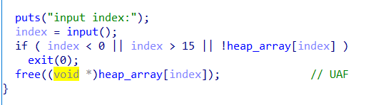 看了别人的wp,对于第一次把chunk分配到stdout还有别的思路:先释放一块unsorted chunk,然后申请回来0x70大小的fast chunk,此时这块chunk上也是会残留着libc地址(正常的malloc是不会清零的),然后释放两个fast chunk进入bin链,将后进的那块,借用UAF把fd指针修改成指向有着libc地址的那个chunk,这时也能将堆块申请到stdout上