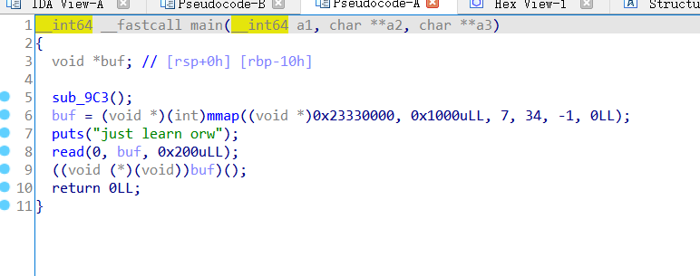 orw_seccomp函数执行了两次prctl函数(出现prctl就是沙箱的题目)