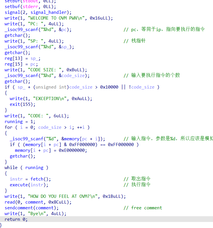 所谓VM pwn,就是模拟虚拟机的底层运行机制,大逻辑上拥有内存、寄存器,内存细分还有堆栈等等,以及自己的一套指令集,所以如果就算碰到不是上面的给了符号表的,也可以通过这个大逻辑自己进行理解性的还原代码,使得代码更好阅读。这类型的pwn题难点更多就是在于代码逻辑的理解,知道指令集的操作,再找寻里面出现的漏洞,要具备十足的耐心,毕竟现在2021的题目肯定比上面复杂很多很多。
