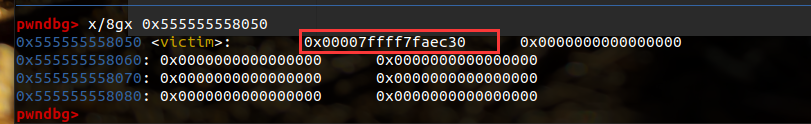 - 在 &target1 + 8 的位置填写 &target2 - 0x10;