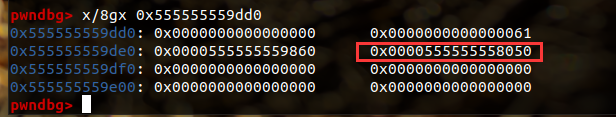 最后使用 calloc 申请一个同等 size 的堆块,即可在目标地址上写入一个大数。
