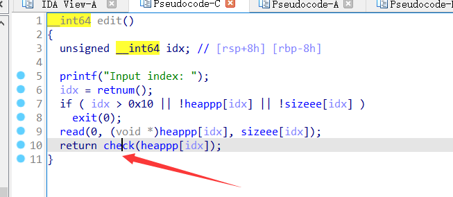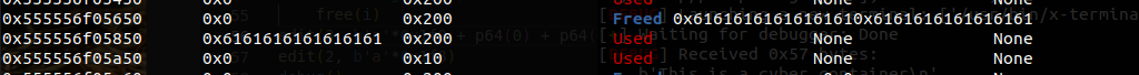 def edit(idx, content): p.sendlineafter(b"> ", b'3') p.recvuntil("Input index: ") p.sendline(str(idx).encode('ascii')) p.send(content)
