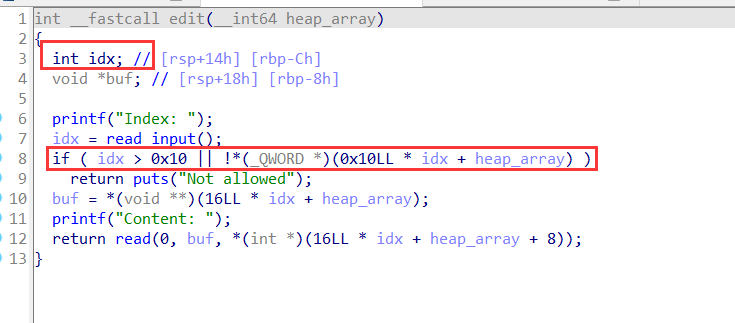 def add(size, content): p.sendlineafter(b"5. leave\n", b'1') p.recvuntil(b"Size: ") p.sendline(str(size).encode('ascii')) p.recvuntil(b"Content: ") p.send(content) def edit(idx, content): p.sendlineafter(b"5. leave\n", b'3') p.recvuntil(b"Index: ") p.sendline(str(idx).encode('ascii')) p.recvuntil(b"Content: ") p.send(content)